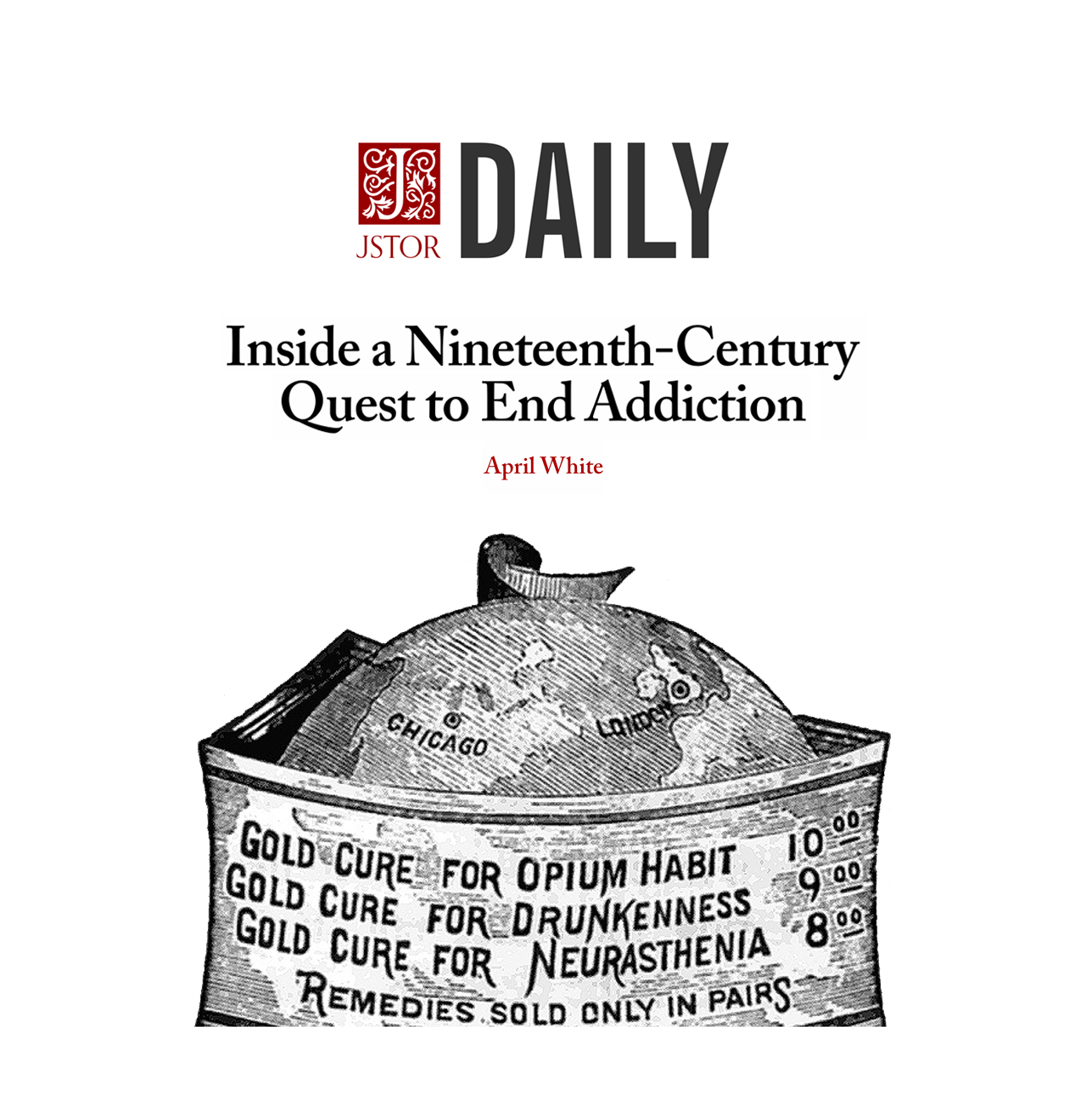 In the United States in the late-nineteenth century, drunkenness was an epidemic. And a second plague of addiction was advancing: Opium had quickly transformed from a rare, exotic drug to a life-changing pain medication to a crippling habit. Advocates preached against the vice of alcohol and encouraged strong moral character and abstinence pledges, while others reached for more dramatic options to end alcoholism and drug addiction, including asylums and even corporal punishment. Seventy miles outside Chicago, small-town doctor Leslie E. Keeley offered a different answer.
